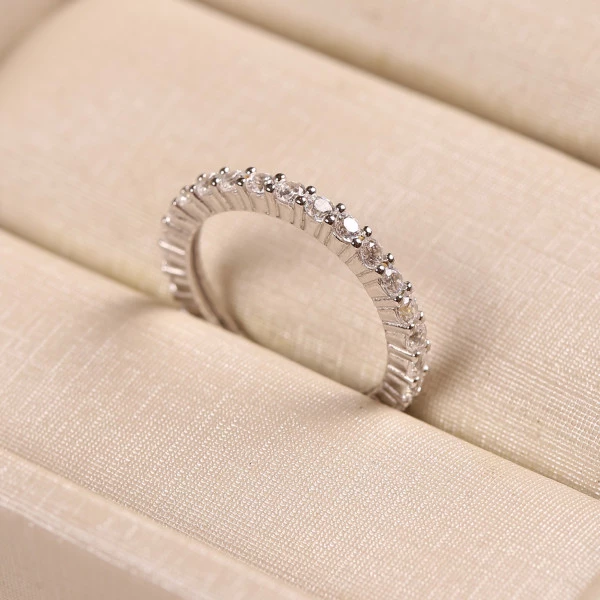 Aliança Inteira Cravejada Com Zircônias Em Prata