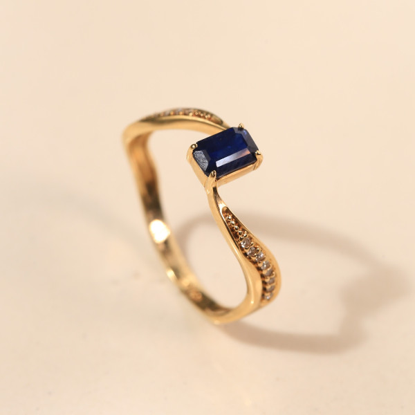 Pedras: 1 Safira Retangular e 16 Diamantes