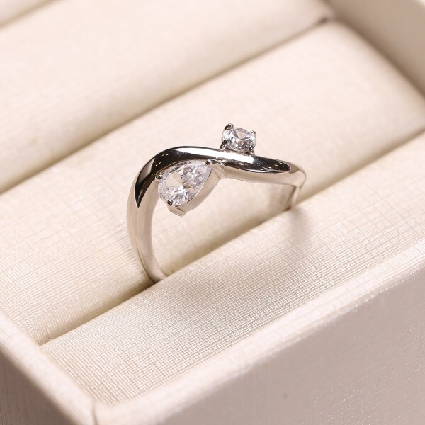 Anel Ondulado Com Zircônias Gota e Circulo Em Prata