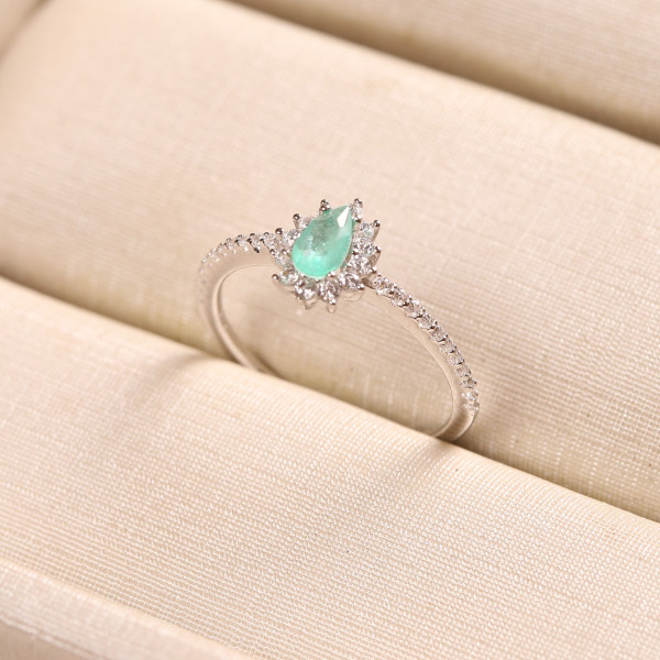 Anel Gota Cravejado Com Zircônia Colombiana Em Prata