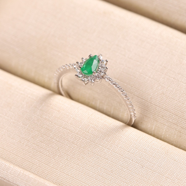 Anel Gota Cravejado Com Zircônia Verde Em Prata
