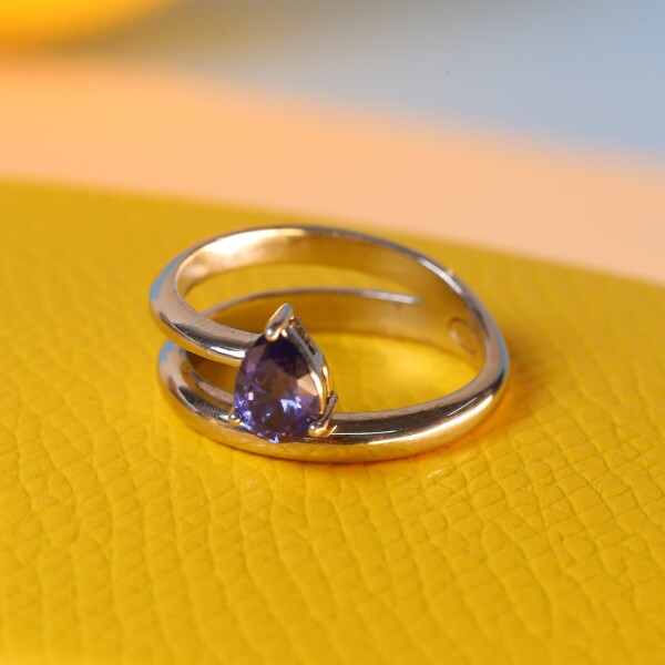 Anel Gota Zircônia Tanzanita em Prata