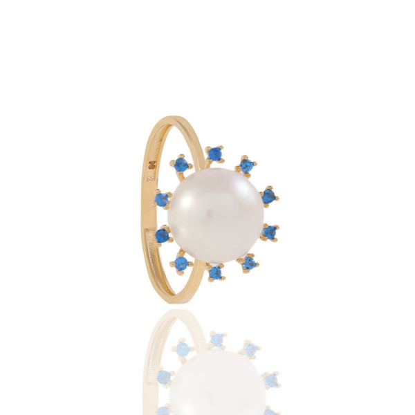 Pedras: Pérola Botão Natural e 10 Zircônias Azul