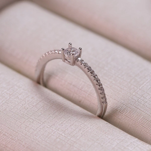 Anel Solitário Cravejado Com Zircônias Em Prata