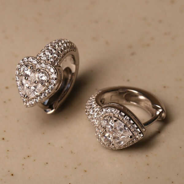 Argola Coração Pavê Cravejada Com Zircônia Em Prata