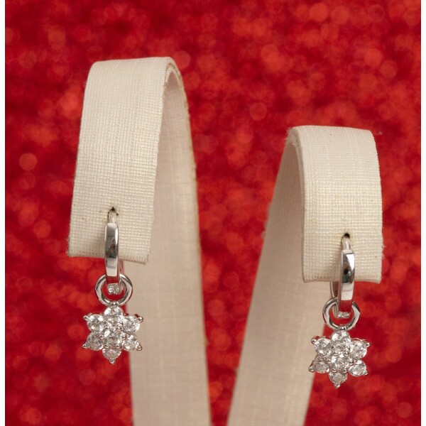 Argola Mini com Flor com Zircônia Pendurada em Prata