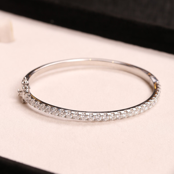 Bracelete Fio Reto Cravejado Com Moissanites Em Prata