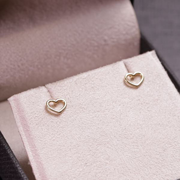 Brinco Coração Vazado Em Ouro Amarelo