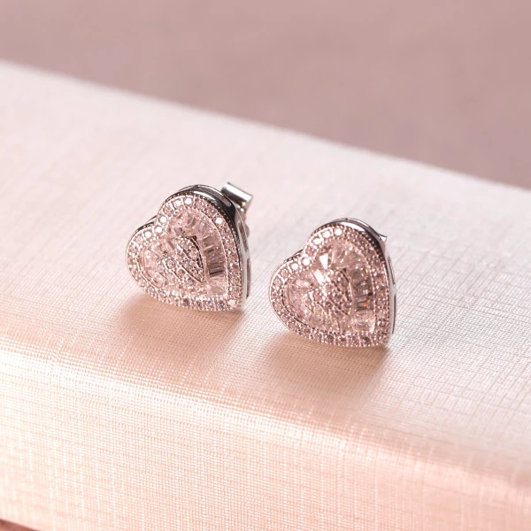 Brinco Coração Pizza Cravejado Com Zircônias Em Prata
