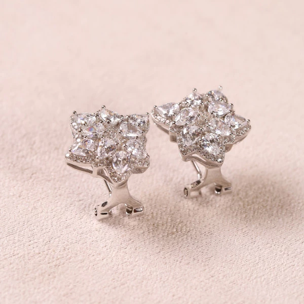 Brinco Flor Cravejado Com Zircônias Em Prata