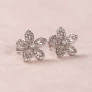 Brinco Flor Pétalas Cravejadas Com Zircônias Em Prata