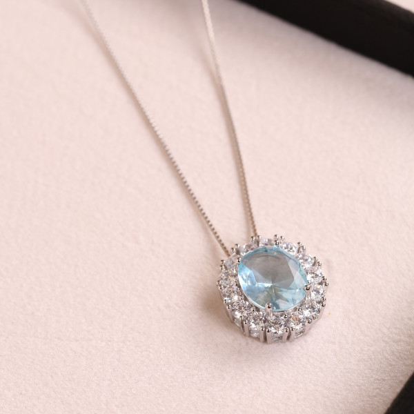Gargantinha Oval Cravejado Com Zircônias Água-Marinha Em Prata