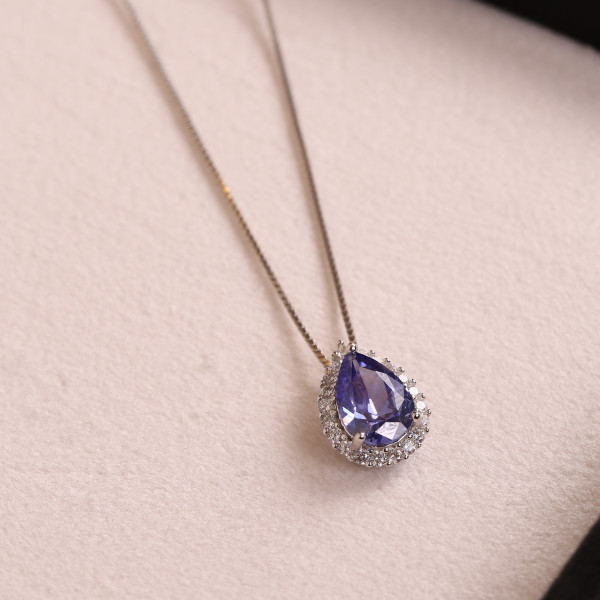 Gargantinha Gota Cravejado Com ZircôniasTanzanita Em Prata