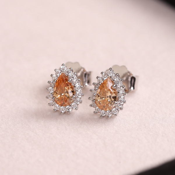 Brinco Gota Cravejado Com Zircônias Champagne Em Prata