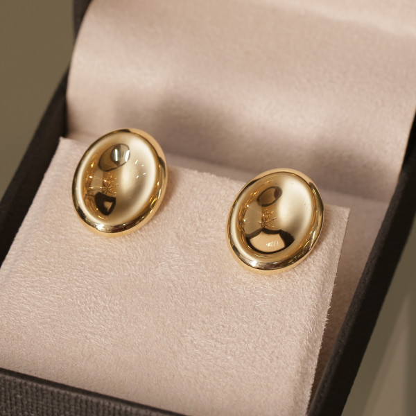 Brinco Oval Polido Côncavo Em Ouro Amarelo