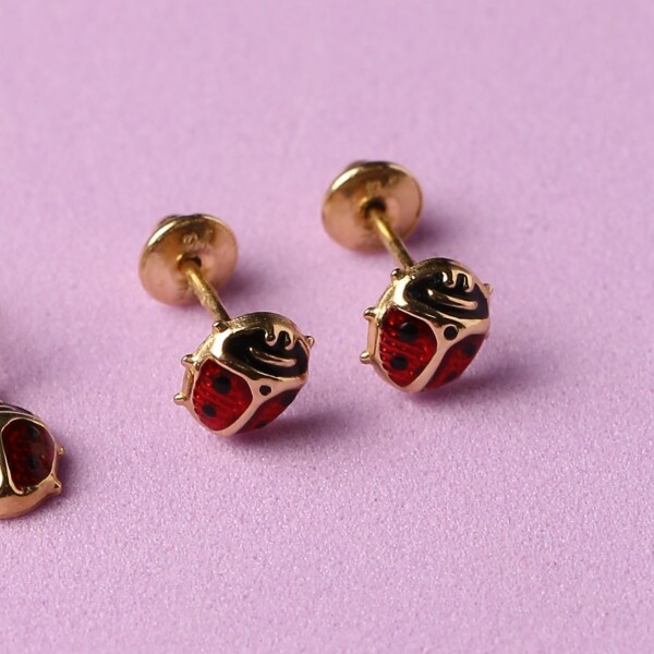 Brinco Joaninha Resinada Em Ouro Amarelo