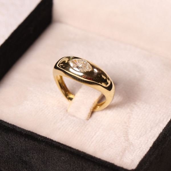 Pedras: 1 Moissanite Navete 7x6 mm