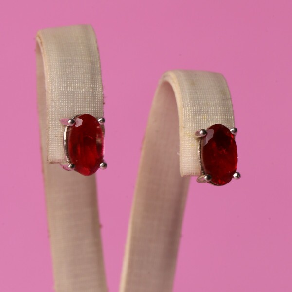 Brinco Oval Com Zircônias Rubi Em Prata