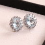 Brinco Oval Cravejado Com Zircônias Água-Marinha Em Prata
