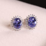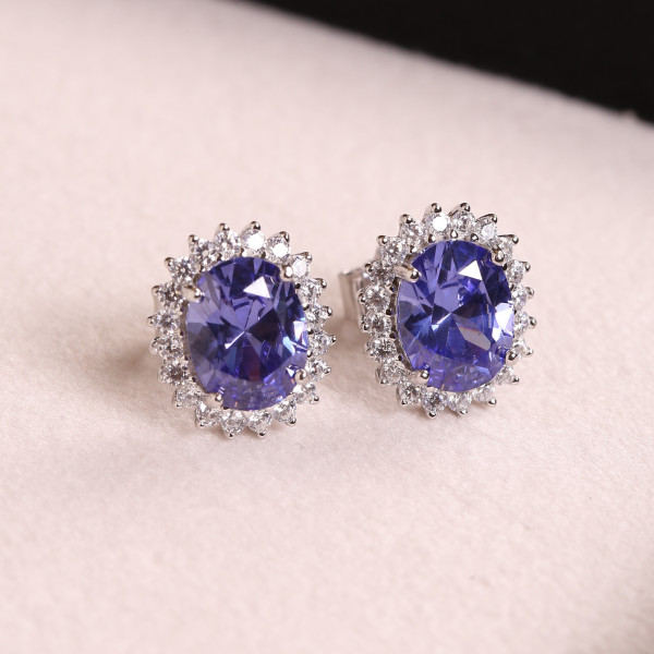 Brinco Oval Cravejado Com Zircônias Tanzanitas Em Prata