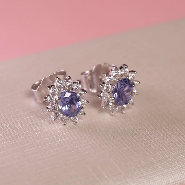 Brinco Oval Cravejado Com Zircônias Tipo Tanzanitas Em Prata