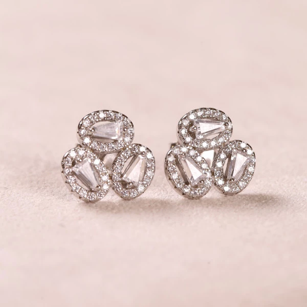 Brinco Trio Oval Cravejado Com Zircônias Em Prata