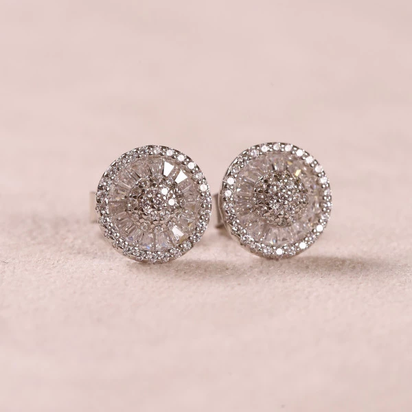 Brinco Pizza Cravejado Com Zircônias Baguetes Em Prata