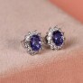 Brinco Oval Cravejado Com Zircônias Tanzanitas Em Prata