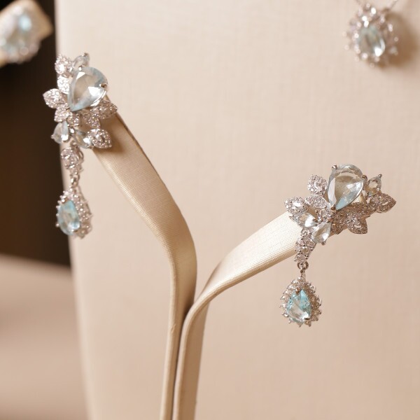 Brinco Gotas Cravejadas Com Zircônias Tipo Águas Marinhas Em Prata