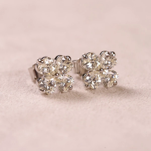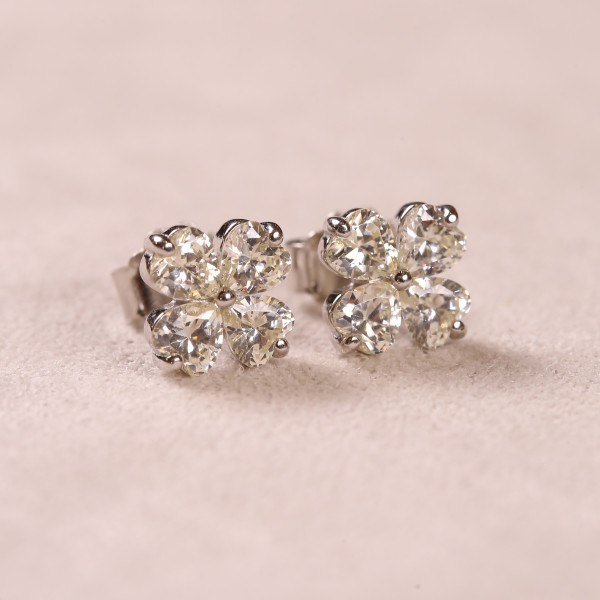 Brinco Trevo Corações Cravejado Com Zircônias Em Prata