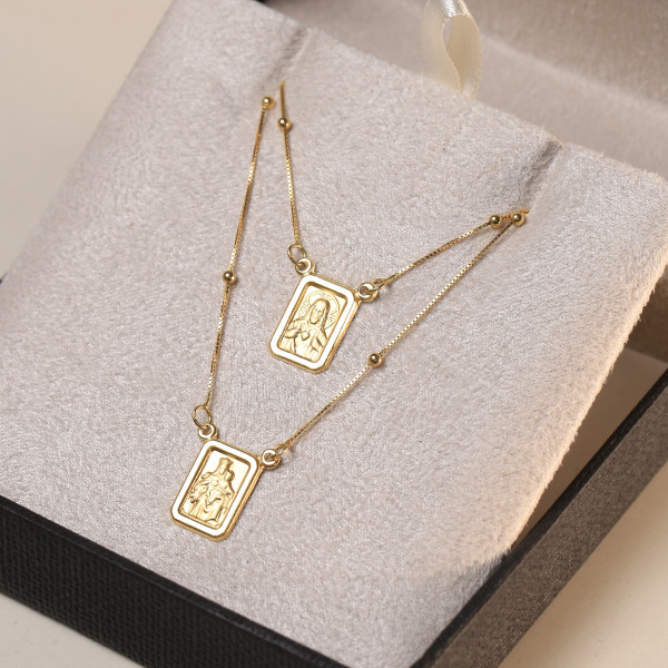 Escapulario Frente e Verso Com Veneziana Com Bolinhas Em Ouro
