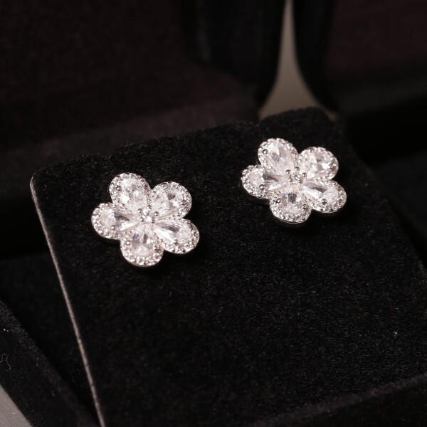 Brinco Flor Cravejado Com Zircônias Em Prata