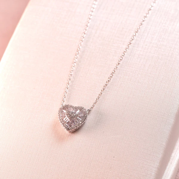 Gargantilha Coração Pizza Cravejada Com Zircônias Em Prata