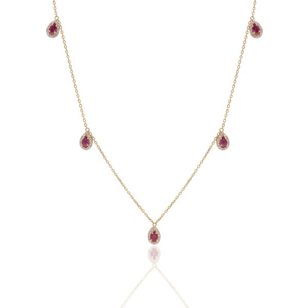 Pedras: 5 Rubis Gota 3 x 5 mm e 66 Diamantes
