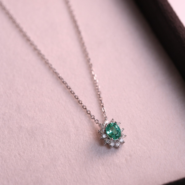 Gargantilha Gota Com Moissanite Semelhante a Esmeralda Em Prata