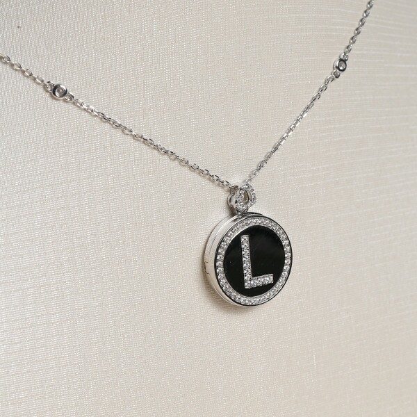 Gargantilha Relicario Com Letra L Cravejada Com Zircônias Em Prata
