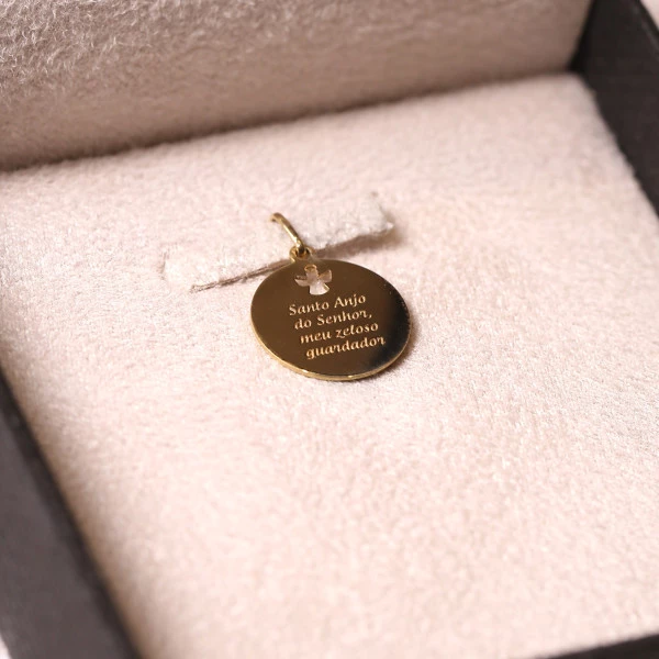 Pingente Anjo Da Guarda Com Oração Em Ouro Amarelo