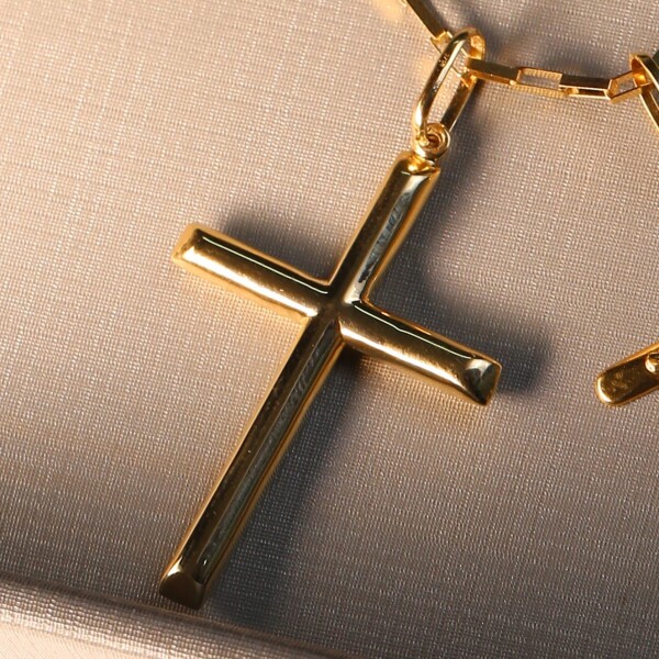Pingente Cruz Polida Oca Em Ouro Amarelo