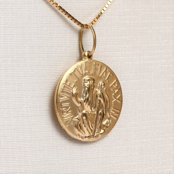 Pingente Medalha São Bento Oca Frente e Verso Em Ouro Amarelo
