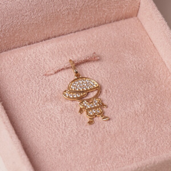 Pingente Menino Cravejado Com Zircônias Em Ouro Amarelo