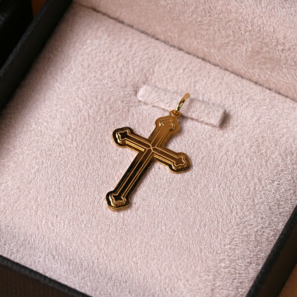 Pingente Cruz Laser Em Ouro Amarelo