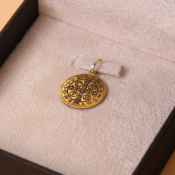 Pingente Medalha São Bento Vazada Em Ouro Amarelo