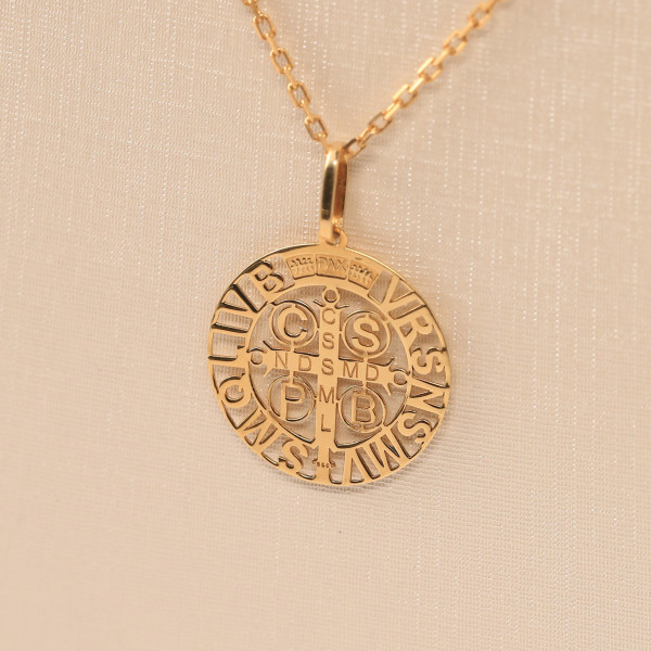 Pingente Redondo São Bento Vazado Em Ouro Amarelo