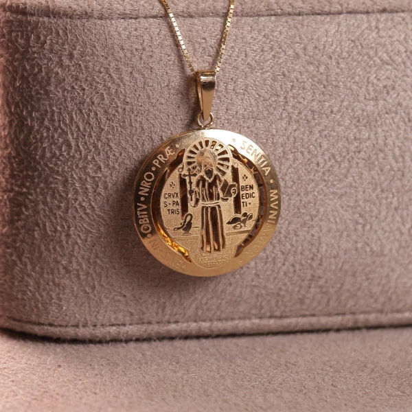 Pingente São Bento Vazado a Laser Em Ouro Amarelo