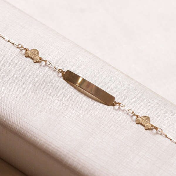 Pulseira Chapinha Com Carrinhos Em Ouro Amarelo