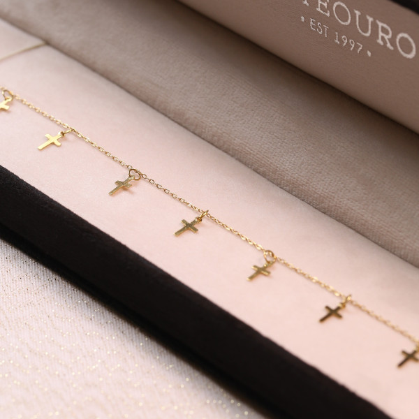 Pulseira Cruz Penduradas Em Ouro Amarelo