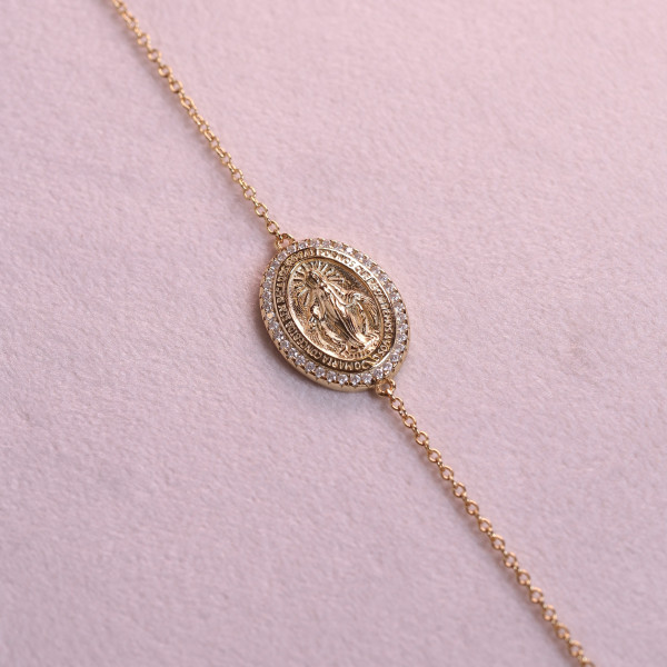 Pulseira Nsa Aparecida Cravejada Com Moissanites Em Prata Com Banho Em Ouro Amarelo
